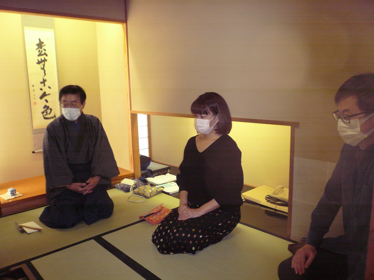今年初めて人が集まった機会。今回は、珍しい炉の『炭点前』に焦点を当てて、基本の炭点前を勉強させていただきました。実際に人前で、冷静に点前をすることが、いかに難しいか、を思い知らされた時間になりました。
